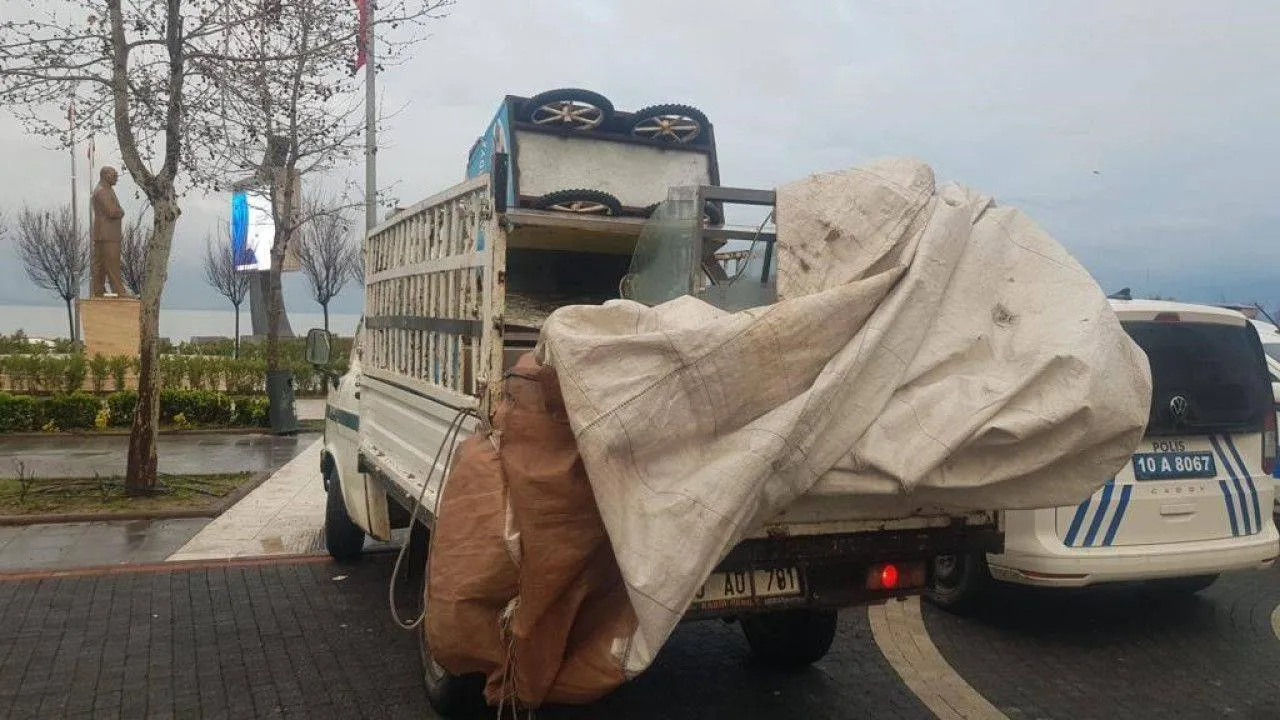 Edinilen bilgiye göre, Akçay Sarıkız Mahallesi Leman Akpınar Caddesi üzerinde hırsızlık yapan kişilerin olduğu yönündeki ihbar üzerine İlçe Emniyet Müdürlüğü Devriye Ekipler Büro Amirliği ekipleri alarma geçti. Ekipler, takip sonucu olaya konu olan 10 AU 791 plakalı kamyoneti durdurarak, araç içinde olan Oktay Ö. (32) ve Kamil S. (23) isimli kişileri gözaltına aldı. Yapılan incelemede, araçta bulunan seyyar midyeci esnafa ait olduğu öğrenilen malzemelerin Neva Beach önünden çalındığı tespit edildi.