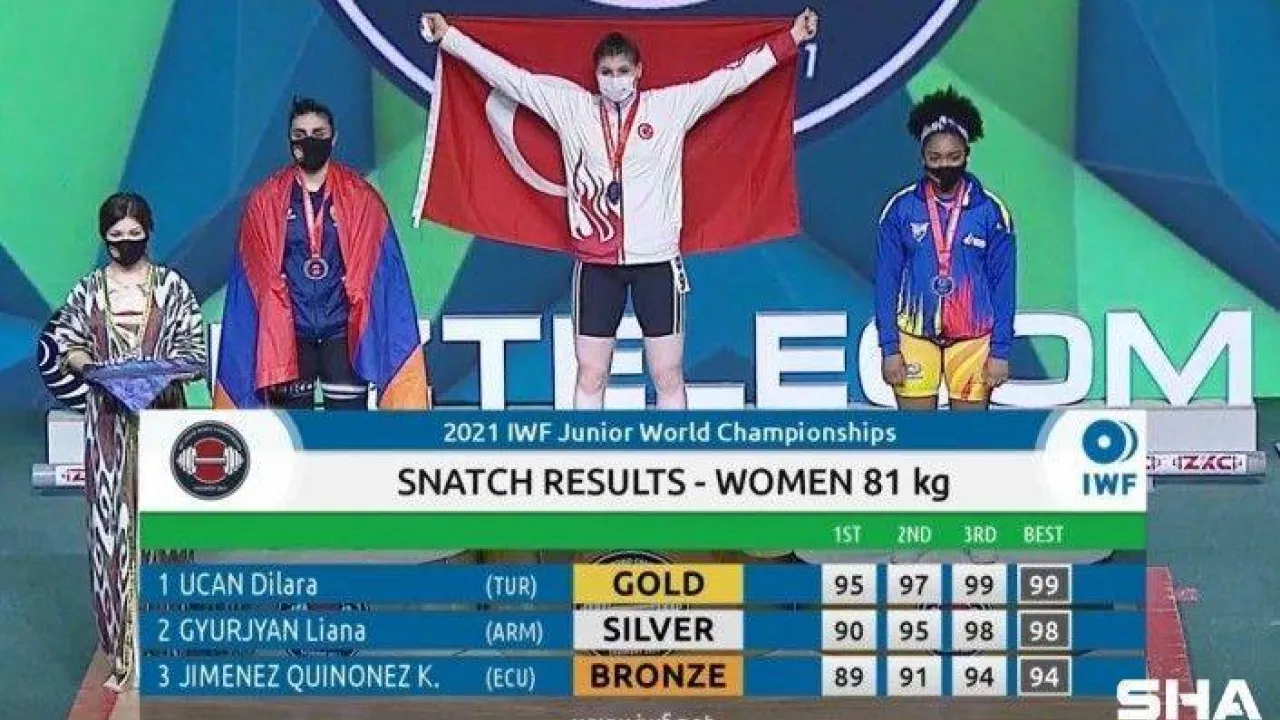 Gençler Dünya Halter Şampiyonası’nın 7. gününde kadınlar 81 kiloda yarışan milli sporcu Dilara Uçan koparmada 99 kilo ile altın, silkmede 123 kilo ile bronz, toplamda ise 222 kiloluk derecesiyle Gençler Dünya ikincisi olarak gümüş madalya kazandı.
