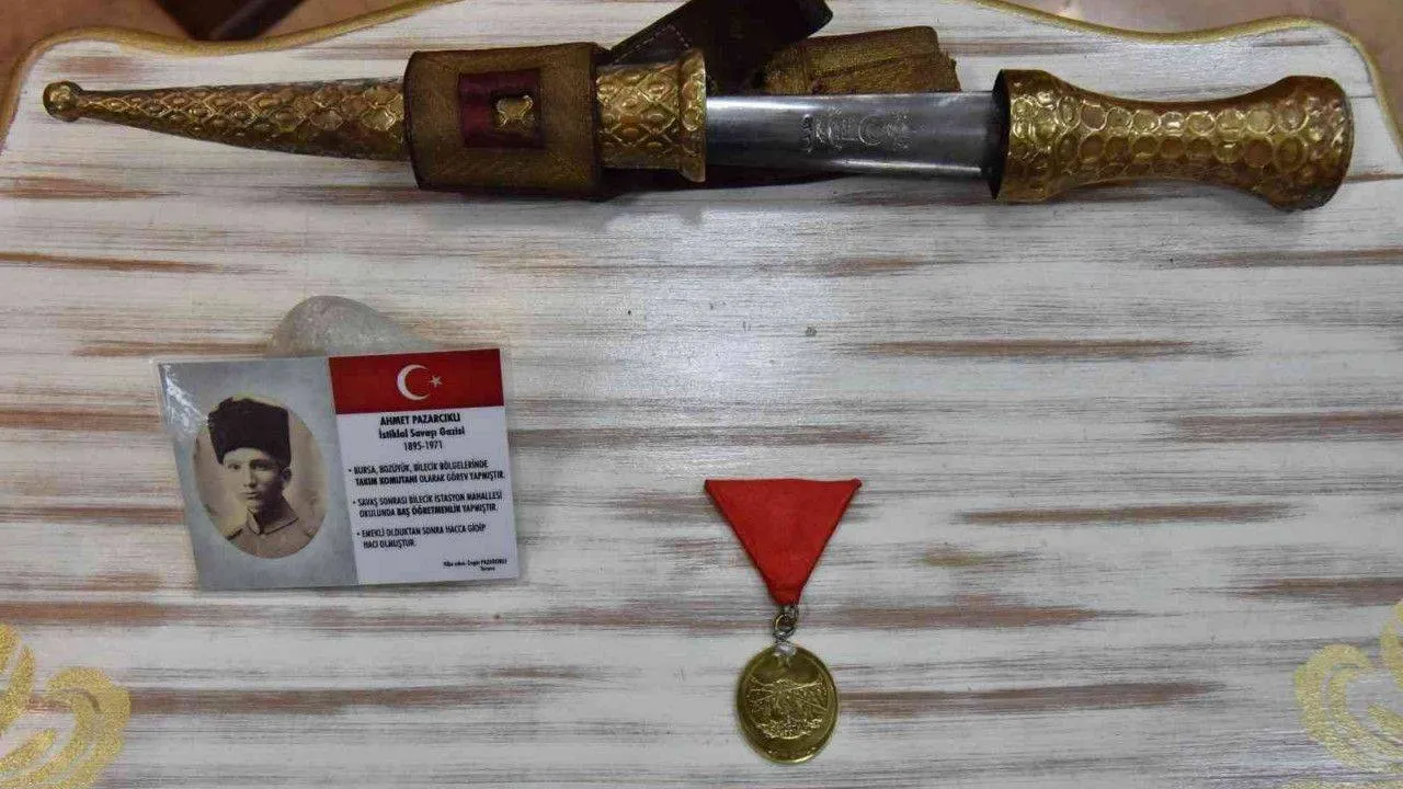 İstiklal Savaşı’nın kahramanlarından Ahmet Pazarcıklı’nın torunu Engin Pazarcıklı, o dönemde kullanılan kama ve istiklal madalyasını, Bilecik Belediyesi Yaşayan Şehir Müzesi’ne bağışladı.