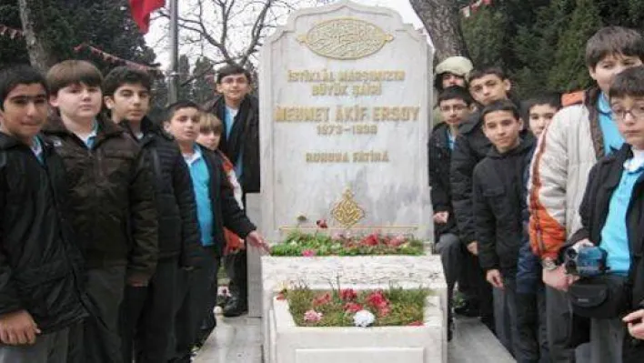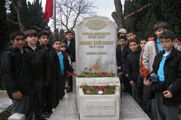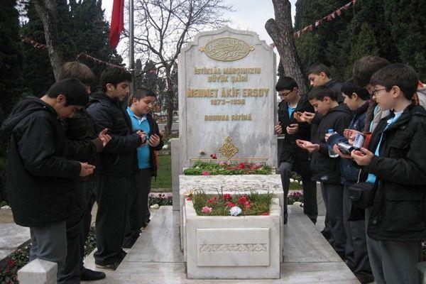 Silivri Fatih Koleji 7.sınıf öğrencileri Mehmet Âkif Ersoy'un kabri başında dualar okuyan öğretmen ve öğrenciler, yapılan duaya hep birlikte 'amin' dedi.