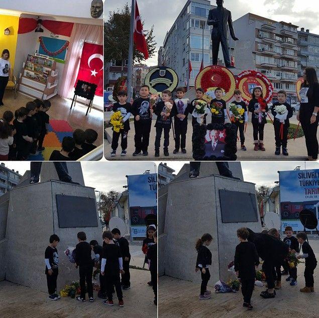 Renkli Balonlar Anaokulu öğrencileri, 10 Kasım Atatürk’ü anma gününde öğretmenleri nezaretinde Silivri sahilinde bulunan Atatürk Anıtında saygı duruşunda bulunarak elleriyle hazırladıkları çelenklerini sundular. Ellerindeki buketleri de Atatürk anıtı önüne bırakan minik yürekler çektirdikleri fotoğrafla bugünü ölümsüzleştirdi.