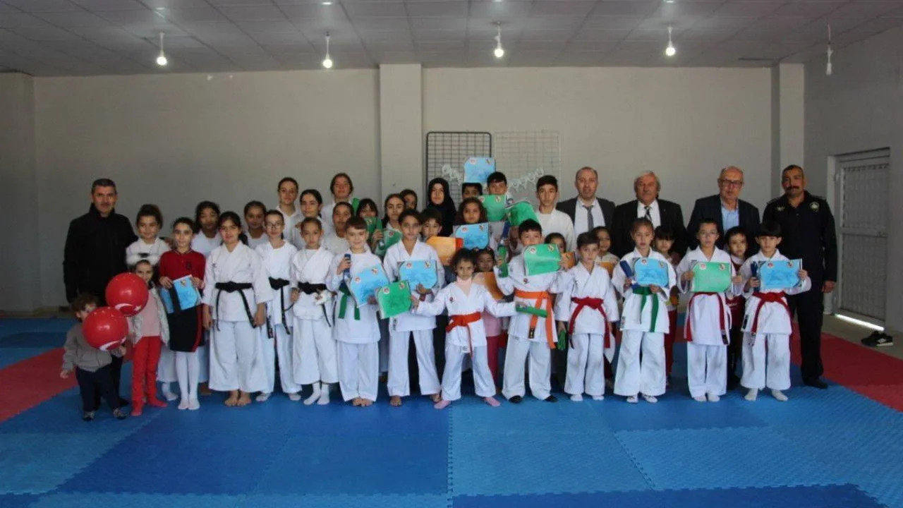 Bilecik'in Osmaneli ilçesinde karate eğitimlerini tamamlayan kursiyerler kuşak sınavını başarıyla geçti.