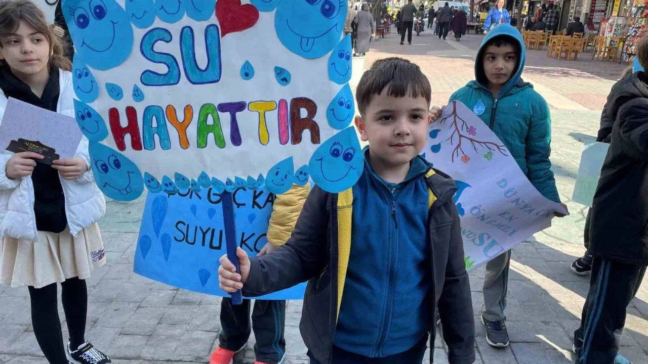 Sakarya'da 22 Mart Dünya Su Günü çerçevesinde suyun önemine dikkat çekmek isteyen minik öğrenciler, ellerindeki pankartlarla yürüyüp, vatandaşlara broşür dağıttı.