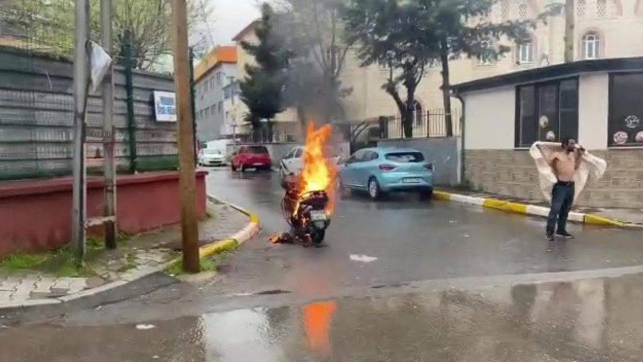 Olay 11 Nisan Salı günü saat 18.00 sularında Sultanbeyli Adil Mahallesi’nde yaşandı. Edinilen bilgiye göre bir adam henüz bilinmeyen bir nedenle motosikletini ateşe verdi.