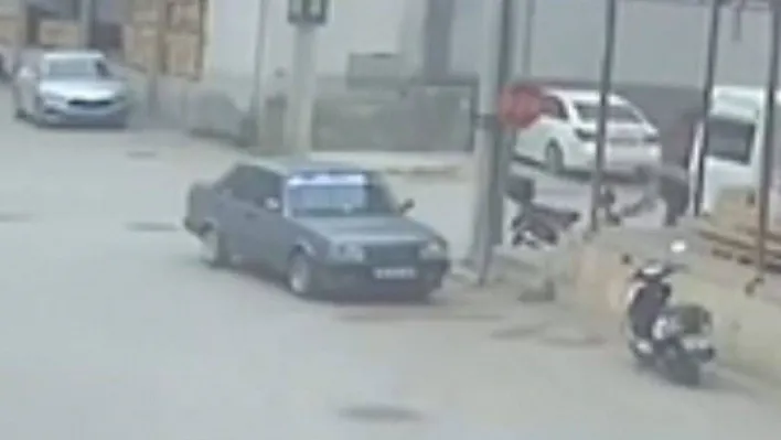 Otomobille bekleyen kişi de, motosikletin çalışmasıyla oradan uzaklaştı. Yaşanan bu anlar ise işyerinin güvenlik kameralarına saniye saniye yansıdı.