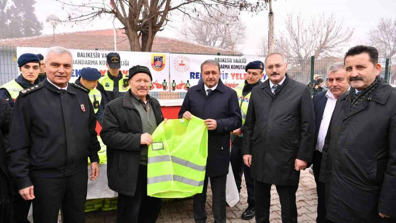 Balıkesir İl Jandarma Komutanlığınca başlatılan “Reflektif Yelek Giy Görünür Ol” kampanyası ile motorlu bisiklet, motosiklet, bisiklet ve elektrikli bisiklet kullanıcılarına Vali Hasan Şıldak’ın katılımı ile reflektif yelek dağıtımı yapıldı.