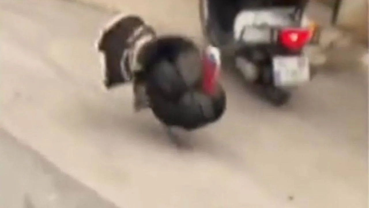 Sancaktepe'de bir hindi, siparişini teslim ettikten sonra motosiklete binmek isteyen kuryeye engel oldu. İzleyenleri güldüren o anlar cep telefonu kamerasına yansıdı.
