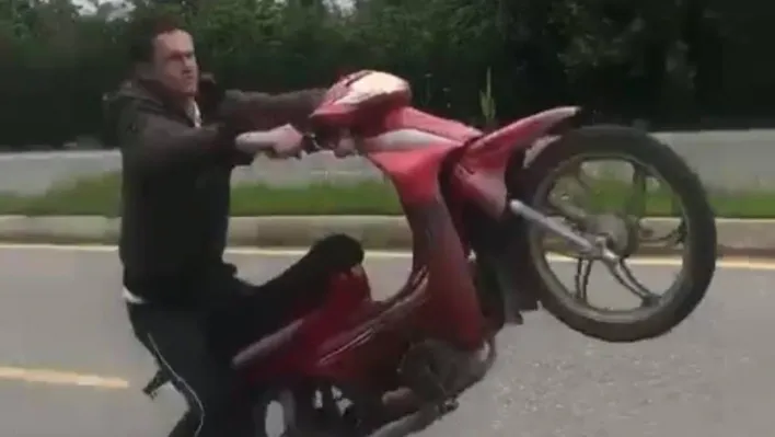 Hendek ilçesinde bir motosikleti gencin tehlikeli oyunu kameraya yansıdı. Motosikletinin ön tekerini kaldıran sürücü hem kendi hem de diğer sürücülerin canını tehlikeye attı. Hiçbir şey olmamış gibi yoluna devam eden genci ise o esnada bölgeden geçen bir vatandaş cep telefonu kamerasıyla saniye saniye kaydetti. Görüntülerde, sürücünün seyir halindeyken motosikletin ön tekerini kaldırıp, ayaklarını yere sürterek yolculuğuna devam ettiği anlar yer aldı.