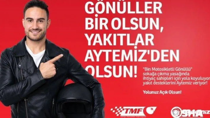 Akaryakıt şirketi Aytemiz, Türkiye Motosiklet Federasyonu’nun (TMF) desteği ve valiliklerin izni ve koordinasyonuyla ihtiyaç sahiplerine gönüllü hizmet verecek olan ‘Bin Motosikletli Gönüllü’ projesinin akaryakıt ihtiyacını karşılayacağını duyurdu. Projeye katılan motosiklet kullanıcıları, sokağa çıkma yasağının olduğu günlerde 08.00-22.00 saatleri arasında ve tamamen gönüllülük esasıyla şehir içinde tanıtıcı yelekleri ile görev yapacak.