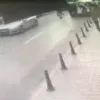 Olay yerine gelen sağlık ekiplerinin hafif yaralılara müdahale ederken yaşanan kaza anı güvenlik kameralarına yansıdı. Kameralara yansıyan görüntülerde karşıdan karşıya geçmeye çalışan şahsa motosikletlinin çarptığı görülüyor.