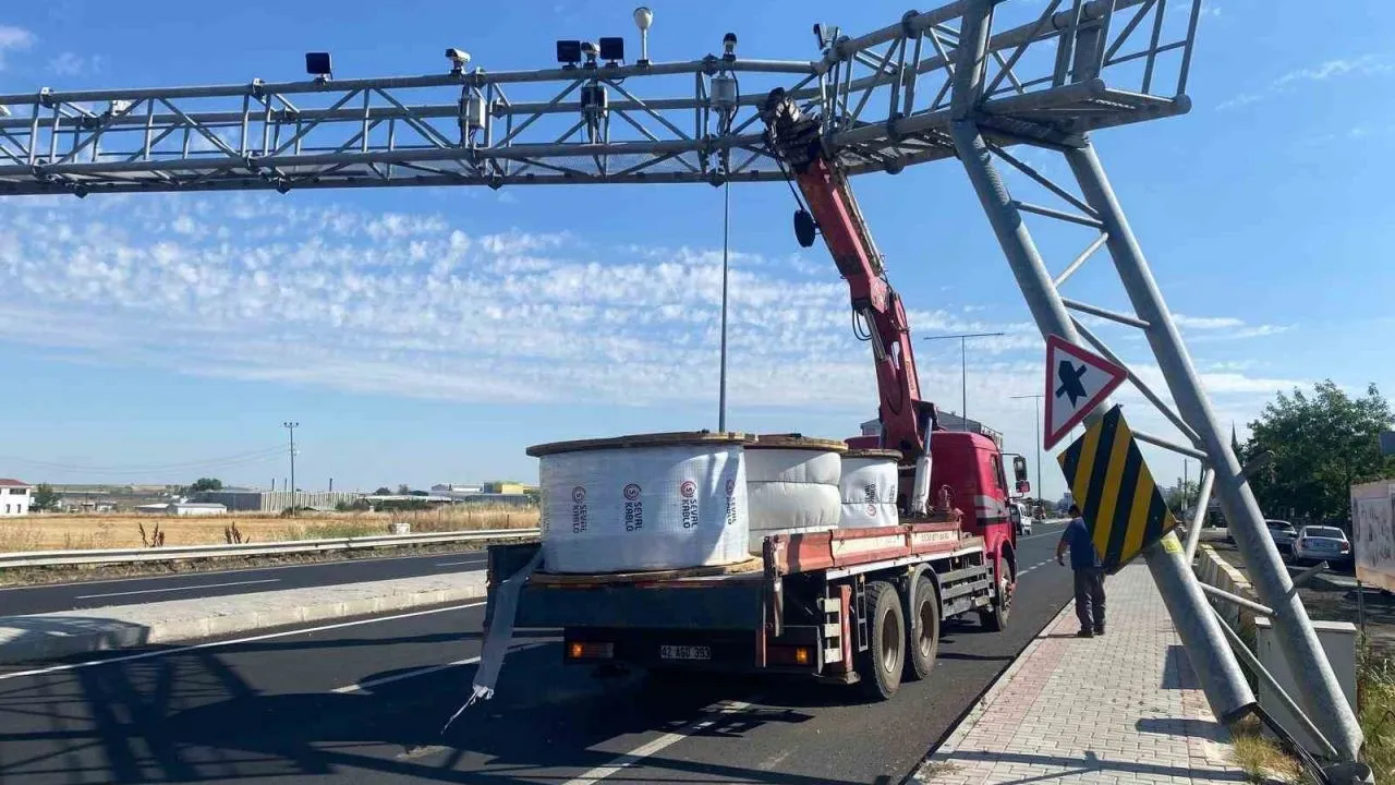Tekirdağ’ın Muratlı ilçesinde bir vinç, Atatürk Caddesi üzerinde bulunan otoyol plaka tanıma sitemi direğine çarptı.