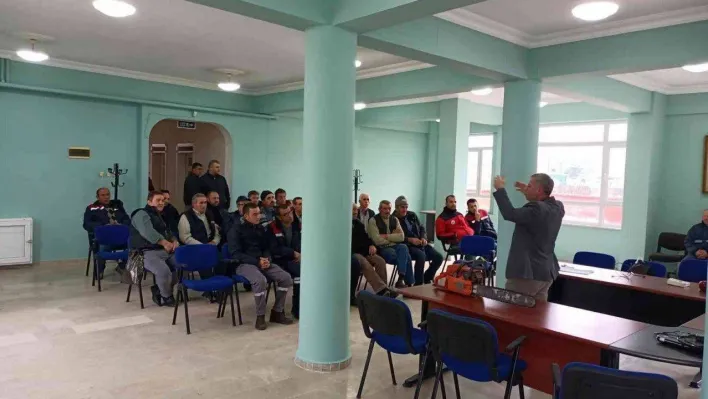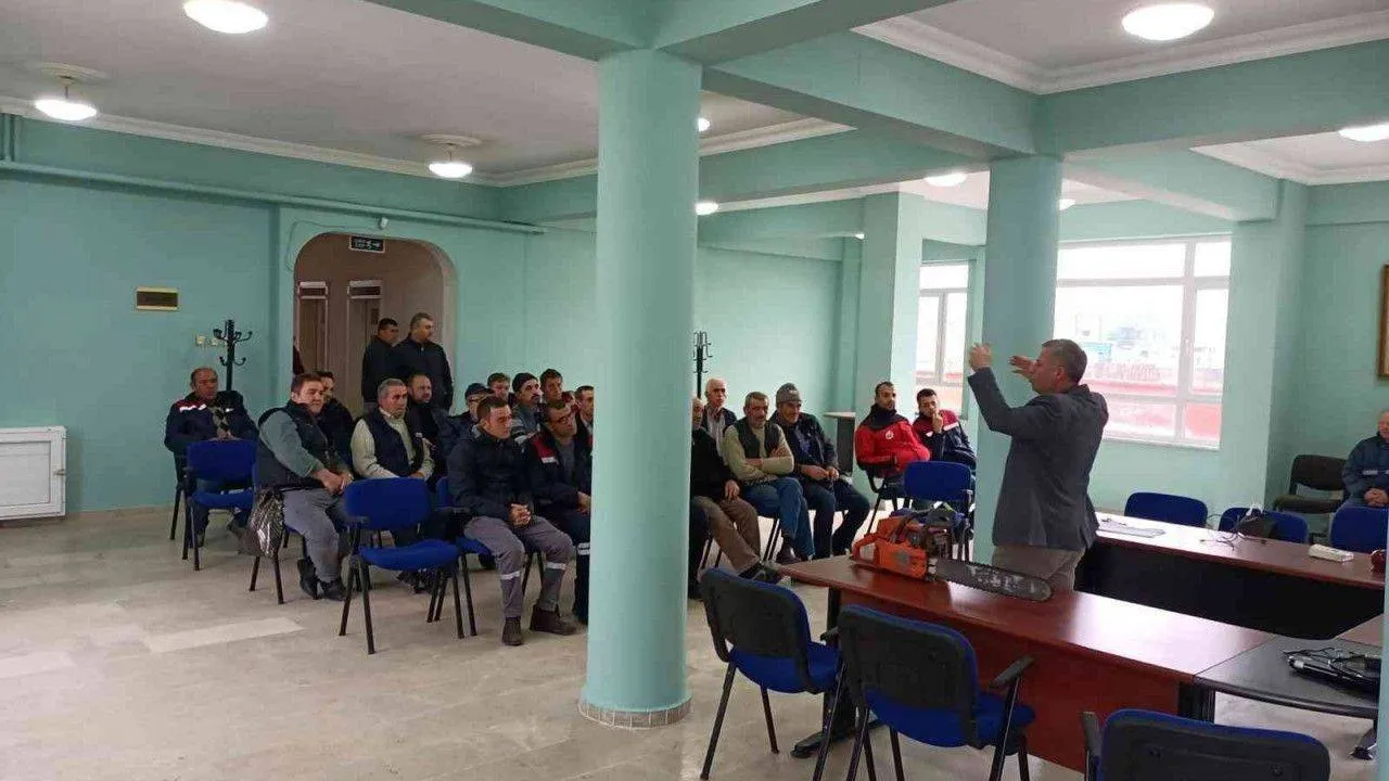 Mustafakemalpaşa Belediyesi İş Sağlığı ve Güvenliği Uzmanı Ahmet Ceylan’da ağaç kesimi ve boylama işleminde dikkat edilecek hususlar hakkında iş sağlığı ve güvenliği eğitimi verdi.