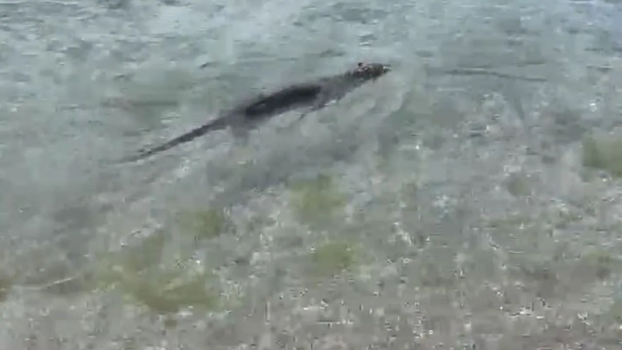 İstanbul'un Silivri ilçesindeki Parkköy Sahili'nde, nesli tükenmekte olan su samuru görüldü. Su samurunu fark eden vatandaşlar heyecanlanırken, o anları cep telefonu ile kayıt altına aldı.
