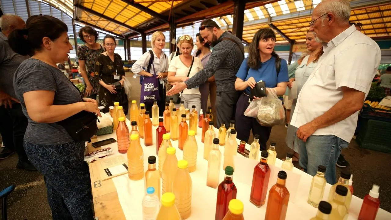 Konak Üretici Pazarı’nı gezen forum katılımcıları, üretilen ve satılan ürünlerle ilgili bilgi aldı. Küçük üreticiler ve aile işletmelerinin temsilcileri ile konuşan konuklar, üretim süreçlerini sorgulayıp, telefonları ile ilgilerini çeken ürünleri fotoğrafladı. Gıda ürünlerinin tadına bakan konuklar, üreticilerin ikramlarının yanı sıra alışveriş de yaptı.
