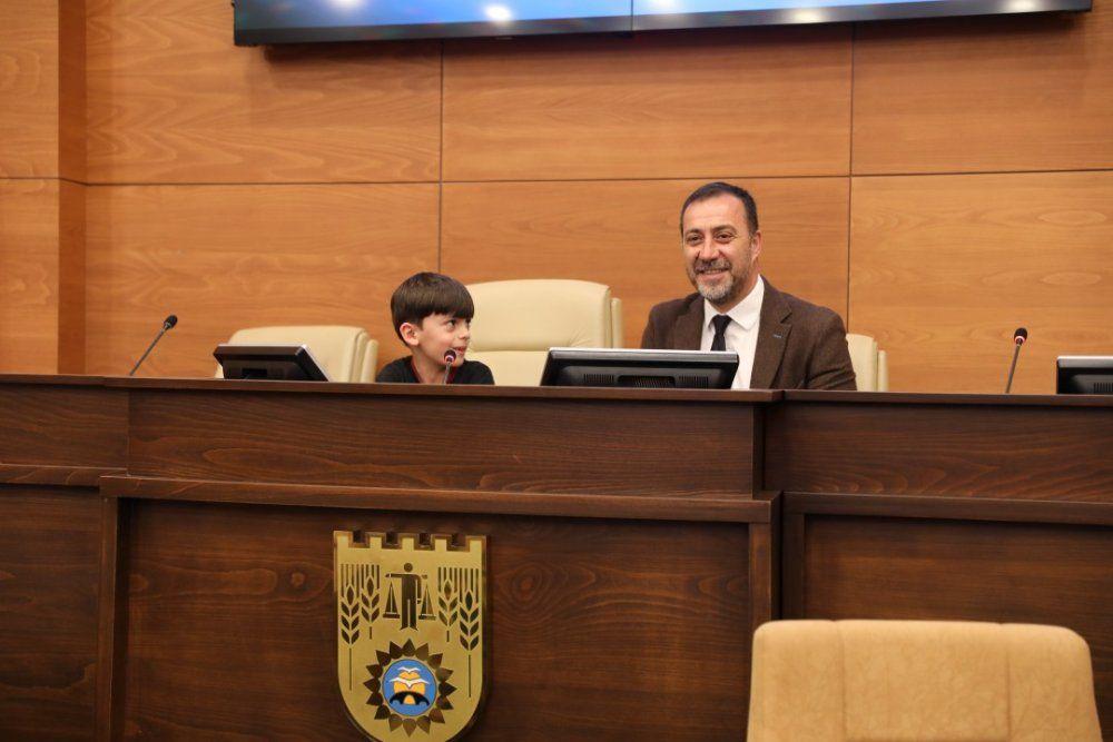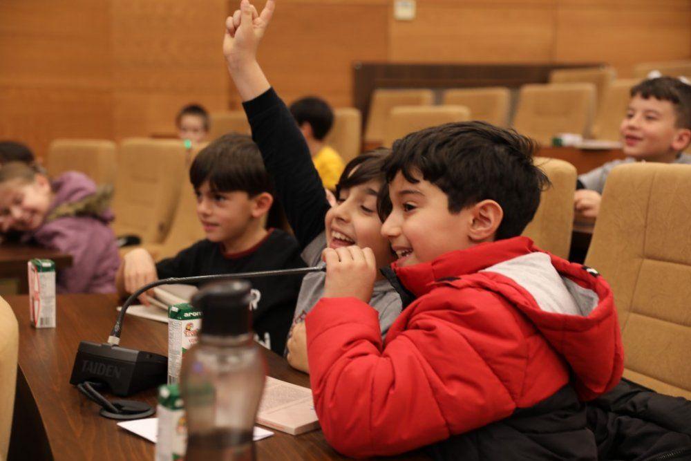 Silivri Belediye Başkanı Volkan Yılmaz, Mektebim Okulları Silivri İlkokulu öğrencilerini Belediye Meclis Salonu’nda misafir etti. Hayat Bilgisi dersinin “Ülkemizde Yönetim” ünitesini Başkan Yılmaz ile birlikte işleyen öğrenciler, tek tek söz alarak ilçede eksik buldukları konuları ve kendi taleplerini iletti. Yüzme havuzu, yaşlıların bakımı, ihtiyaç sahibi ailelere yardım gibi sosyal konuların yanı sıra trafik, yapılaşma, sokak hayvanları, bisiklet yolları, temizlik hizmetleri ve depreme dayanıklı evler gibi birçok konu öğrencilerin gündeminde yer aldı. Sorularını özgürce yönelten öğrencilerden Yusuf, gelecekte belediye başkanı olmak istediğini ifade ederek Başkan Yılmaz’ın daveti üzerine Meclis Başkanı koltuğuna oturdu.