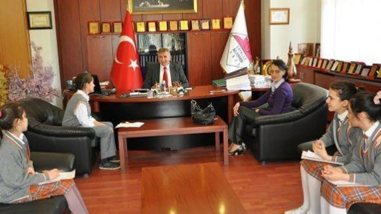 Çatalca Belediye Başkanı Cem Kara, Gazi İlköğretim Okulu 8. sınıf öğrencilerinden Gülcan Kiraz, 6. sınıf öğrencilerinden Hande Atmaca, Ayşenur Tunç ve Beyza Akın'a röportaj verdi.