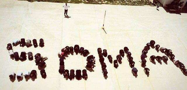 Silivri Necip Sarıbekir Ticaret Meslek Lisesi öğrencilerinden oluşan 66 öğrenci, okul bahçesinde bedenleriyle ‘Soma’ yazdı.