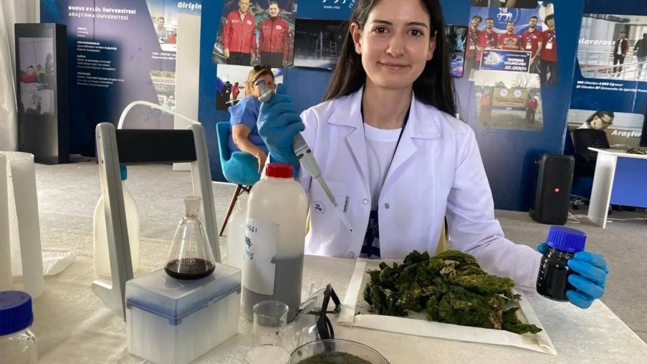 Türkiye’nin en büyük Havacılık, Uzay ve Teknoloji Festivali TEKNOFEST, Cumhuriyetin 100’üncü yılında teknoloji ve bilim meraklılarına kapılarını açtı. Beşinci gününde de onlarca etkinliğe ev sahipliği yapan TEKNOFEST, binlerce vatandaşı ağırlıyor. TEKNOFEST’te yer alan 9 Eylül Üniversitesi biyoteknoloji ana bilim dalında yüksek lisan öğrencisi Sema Doğmaz, Denizde bulunan deniz marullarını öğüterek yeni nesil araçlarda kullanılmak üzere hidrojen gazı elde ediyor. Konuya ilişkin İHA’ya açıklamalarda bulunan Doğmaz, “Yeşil anaparteküller yoluyla biyohidrojen enerjisi üzerine çalışıyorum. Denizin yüzeyinde oluşan kirlilik nedeniyle deniz marulları koku oluşturuyor. Oluşan kirliliği ekipleri toplayarak bertaraf ediyor. Bizde bunu değerlendirmek amacıyla bir çalışma başlattık. Deniz marulu kullanarak hidrojen üretiyoruz. Öncelikle denizden toplanan deniz marulları yıkayarak kuruttuk daha sonra ise kuruttuk. Öğütülen marulları kullanarak cihazımız sayesinde deniz marullarının özünü elde ediyoruz. Daha sonra gümüş parteküller sentezliyoruz. Bununla daha sonra ise hidrojen elde ediyoruz. Elde edilen hidrojen gazını araçlarda kullanmayı planlıyoruz” diye konuştu.
