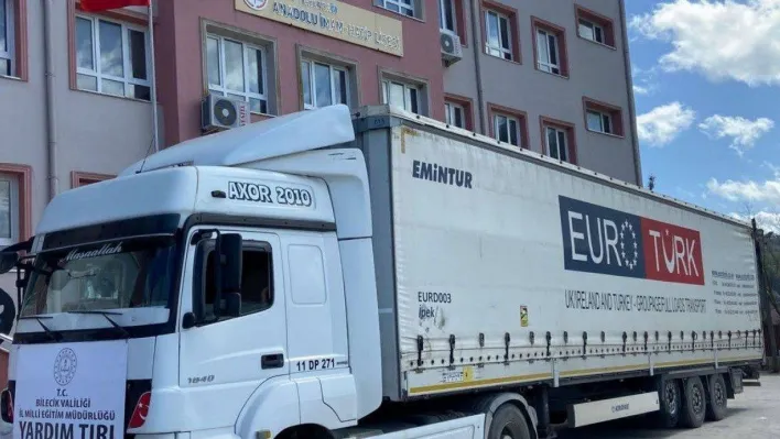 Bilecik İl Milli Eğitim Müdürü Mustafa Sami Akyol, “Öğrenci ve velilerimiz tarafından hazırlanan yardım tırını vatandaşlarımıza ulaştırıldı. Günlük temel ihtiyaçlarını karşılamak amacıyla hazırlanan hijyen kolisi, gıda kolisi, kıyafet, oyuncak, kuru gıda ve yatak deprem bölgelerinde ki görevli personellere teslim edildi” ifadelerini kullandı.