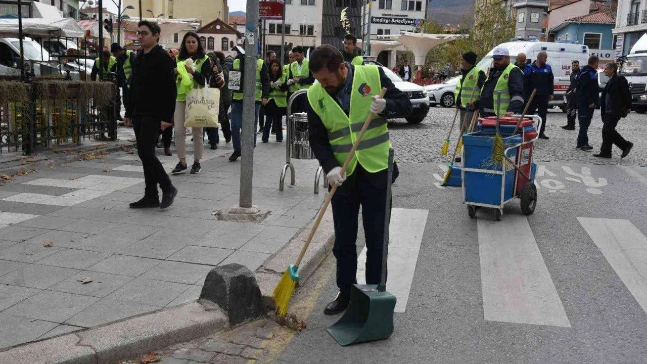 Protokol süpürgeyi eline aldı sokakları süpürdü