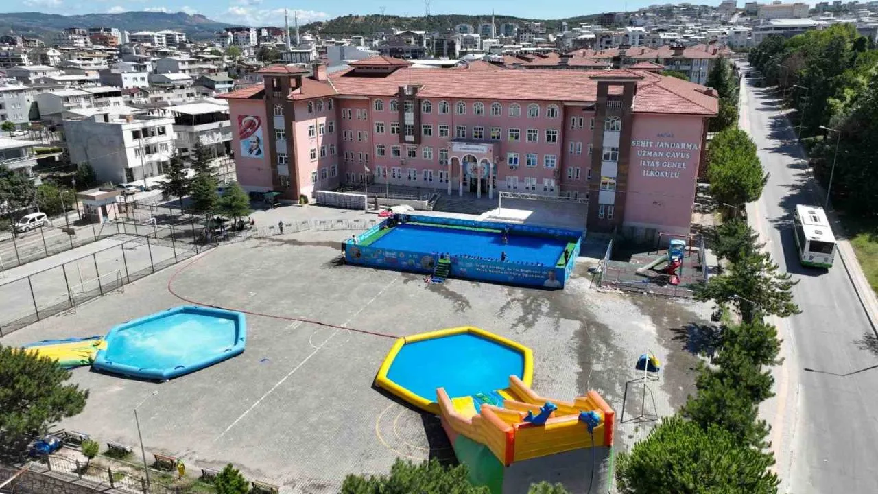 Proje çerçevesinde yaklaşık 5 bin çocuğun yüzme sporuyla buluşması hedeflenirken, Osmangazi ilçesindeki Şehit Jandarma Uzman Çavuş İlyas Genel İlkokulu bahçesi ise tam bir aquaparkı andırıyor. Yüzme eğitiminin yanında çocuklar, kaydıraklı havuzlarda gönüllerince eğleniyor. Eğitim dönemi boyunca zaman zaman isteksiz geldikleri okullarına bu kez büyük bir istek ve heyecanla koşan çocuklar, okul bahçesinde tatilin tadını çıkarıyor.
