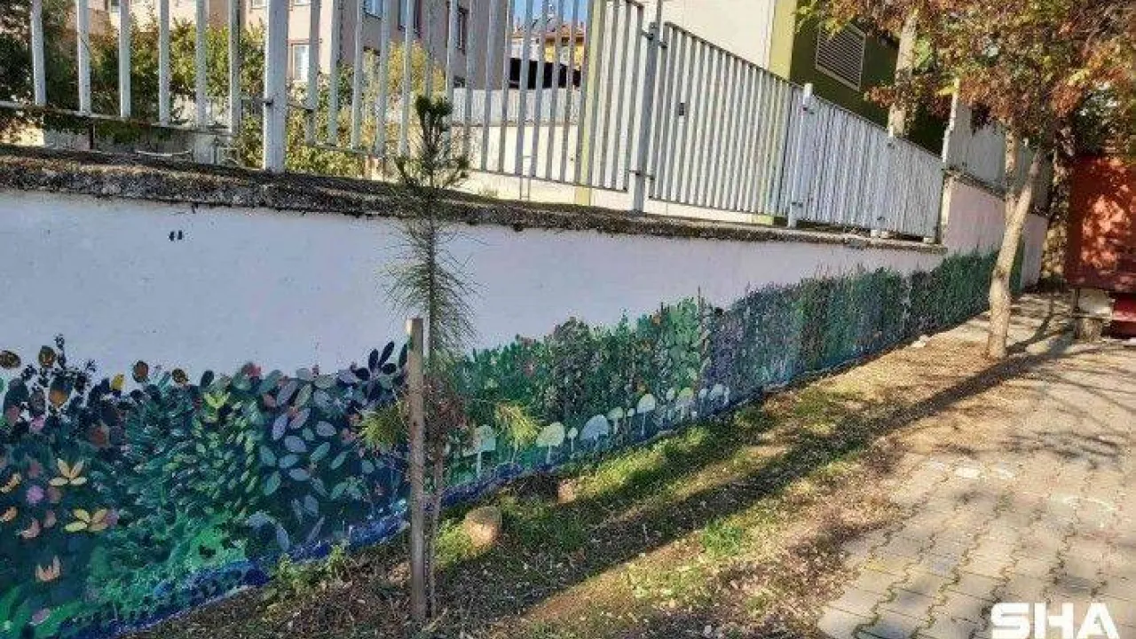 Bursa’nın İznik ilçesinde öğrenciler okul bahçesinin duvarlarını çiçek resimleriyle süsledi.