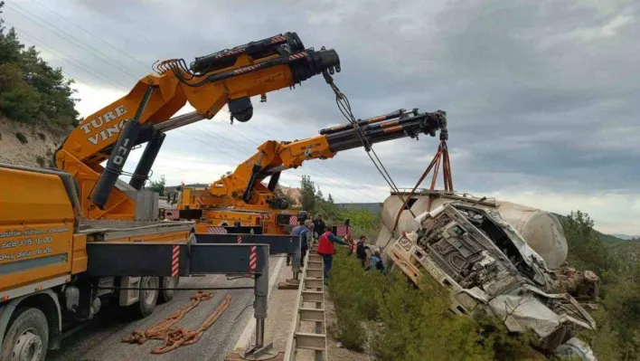 Önceki gün şarampole uçan beton mikseri kurtarıldı