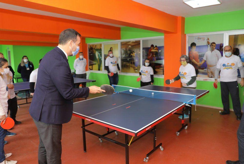 Başkan Yılmaz’ın özel bireylerle sohbet edip masa tenisi maçı yapmasının ardından günün anısına çektirilen fotoğrafla etkinlik sona erdi.