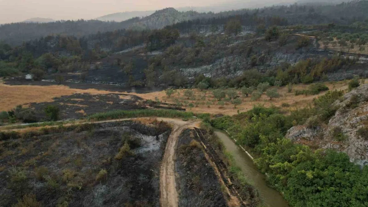 Yangının hasarı gün yüzüne çıkmaya başlarken, bazı yanan bölgeler dron ile havadan da görüntülendi.