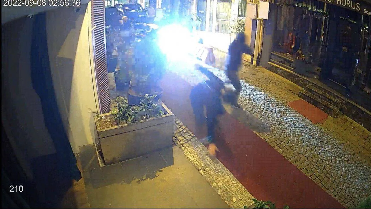 Ortaköy'de ünlü bir gece kulübü önünde yaşanan kavganın ve sonrasında yaşanan 4 kişinin yaralandığı silahlı saldırının yeni görüntüleri ortaya çıktı. Görüntülerde, dayak olayının ardından mekana motosikletle gelen 4 kişinin silahlı saldırı düzenlediği ve güvenlik görevlilerinin saldırıya karşılık verdiği görülüyor.
