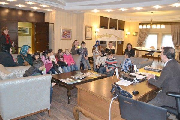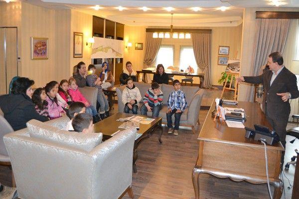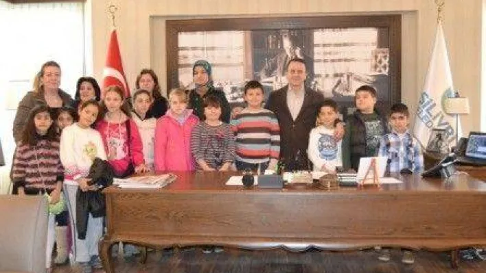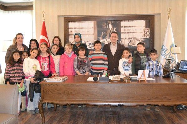 Ortaköy Sezin Öztaş İlkokulu 3-B sınıfı öğrencileri Silivri Belediye Başkanı Özcan Işıklar'ı makamında ziyaret ederek, hazırladıkları okul dergisi için ilçede yapılan hizmetler hakkında bilgi aldılar.