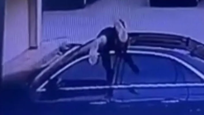Bursa'da park halindeki bir aracı gözüne kestiren hırsız, otomobile cam tavandan girdi. Oto faresinin o anları güvenlik kamerasına saniye saniye yansıdı.
