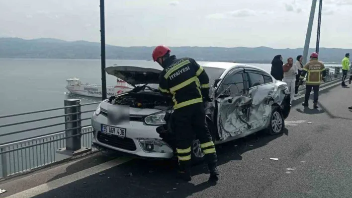 Alınan bilgiye göre, Osmangazi Köprüsü’nde Kocaeli istikametine seyreden 35 AGV 438 plakalı otomobil, sürücüsünün direksiyon hakimiyetini kaybetmesi sonucu köprü ortasındaki bariyerlere çarptı. Çarpmanın etkisiyle araç yolun sağ şeridine savrulup, bariyere çarparak durdu.