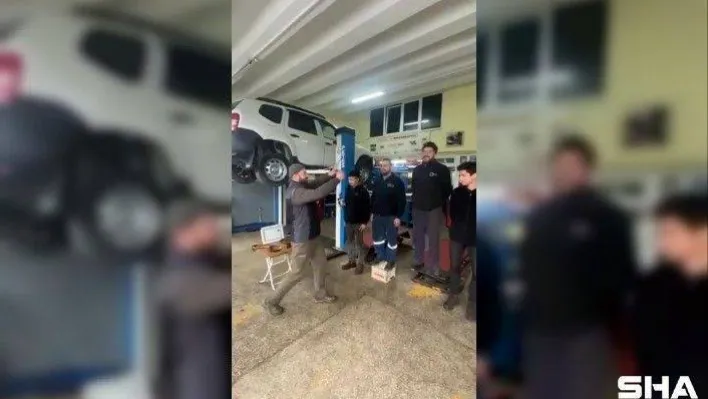 Sakarya’da oto tamircisi çalışanlarına ayna, zincir, diferansiyel seti gibi ödüller takarak yılın en iyi elemanlarını seçti. Yüzleri gülümseten o anlar ise cep telefonuyla kayda alındı.
