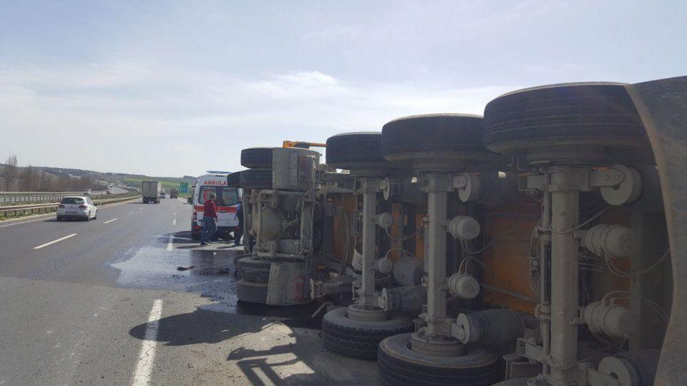 Kaza, TEM otoyolu Kınalı mevkii İstanbul istikametinde meydana geldi. Edinilen bilgilere göre içerisinde Seyit Ahmet T. ile Yusuf Metin Ö.’ün bulunduğu kamyon sürücüsünün direksiyon hakimiyetini kaybetmesi sonucu yan yattı. Kaza sonrası araç içerisinde sıkışan sürücü olay yerine gelen 112 Sağlık görevlileri ile Silivri İtfaiye ekiplerince çıkarıldı.