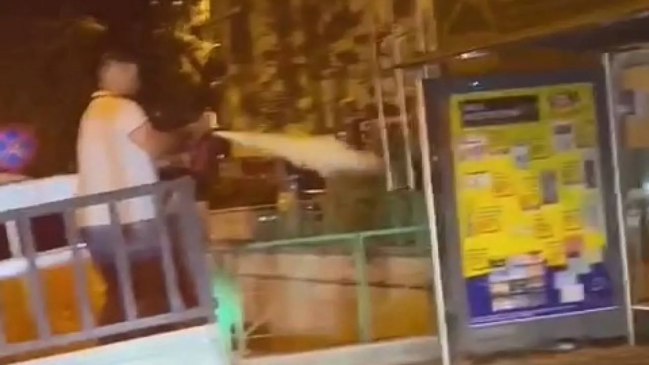 Otobüs durağında bekleyen kişiye yangın tüpü sıktılar