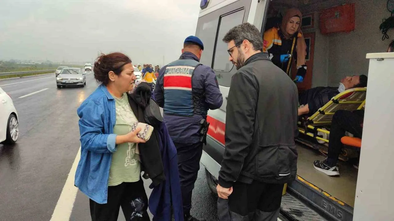 Gebze-Orhangazi-İzmir Otoyolu Orhangazi kavşağı yakınlarında, lüks bir otomobil yağışlı yolda kontrolden çıkarak bariyerlere girdi. Kazayı görüp duran bir sürücünün aracına ise başka bir otomobil arkadan çarptı. Arkadan çarpan otomobilde bulunan 3 kişi hafif şekilde yaralandı.