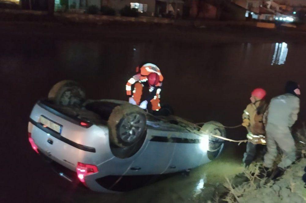 Silivri'de dereye uçarak ters dönen otomobildeki sürücü boğulmaktan son anda kurtuldu.