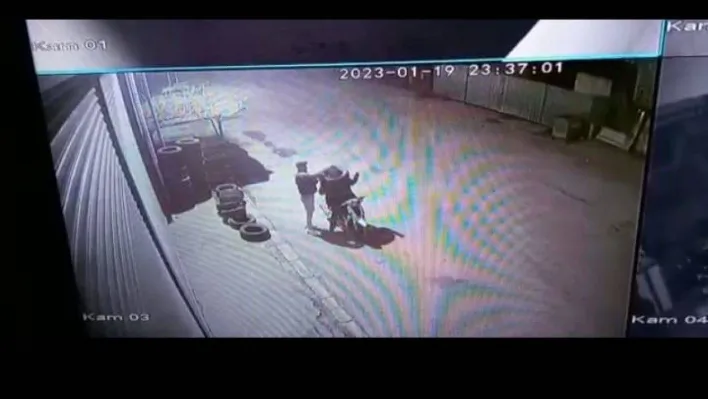 Ankara'da motosikletli iki hırsız kapalı dükkan önünde duran otomobil lastiklerini çalarak kayıplara karıştı. Çaldığı lastiği kıyafet gibi üzerine giyen hırsızların o anları ise güvenlik kameralarına yansıdı.