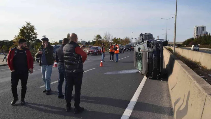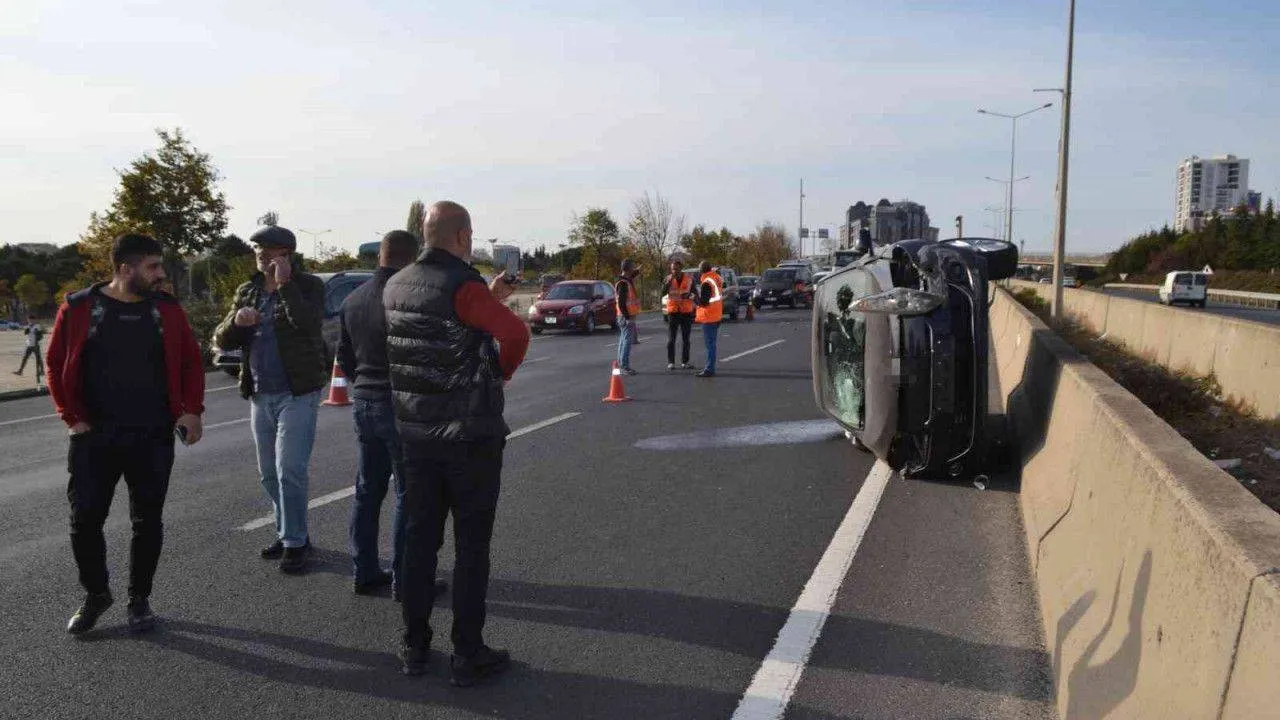 Tekirdağ'ın Çorlu ilçesinde bir araçla çarpışan otomobilin yan yattığı kaza şans eseri yaralanan olmadan atlatılırken, kaza anı kameraya yansıdı.