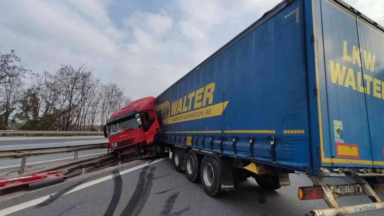 Otoyolda makaslayan tır bariyerlere çarptı: 1 yaralı
