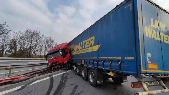 Anadolu Otoyolu Sakarya geçişinde sürücüsünün kontrolünden çıkan tır makasladı. Bariyerlere çarpan tırın sürücüsü yaralandı.