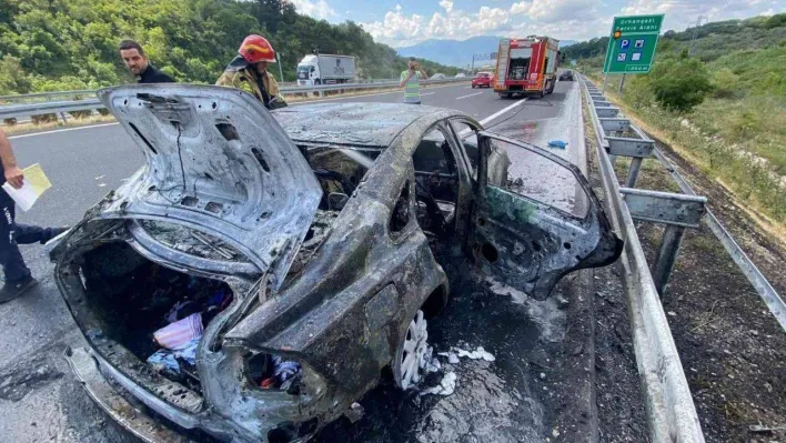 Alınan bilgilere göre, içerisinde 3’ü çocuk 5 kişinin bulunduğu S.Ü. (34) idaresindeki 34 AAV 312 plakalı otomobil, İstanbul istikametinden Bursa istikametine seyir halindeyken Orhangazi Tüneli yakınlarında motor kısmından dumanlar yükselmeye başladı. Motordaki yangını fark eden sürücü S.Ü., aracı emniyet şeridine çektikten sonra ailesi ile birlikte araçtan indi. Otomobil bir anda alev topuna dönerken, araca ilk müdahaleyi yoldan geçen araçlardan inen vatandaşlar tarafından yangın tüpleri ile yapıldı.
