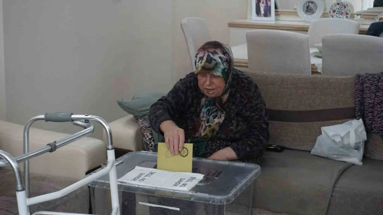 İl Seçim Kurulu görevlileri, Şükrüpaşa Mahallesi’nde ikamet eden ve rahatsızlığı nedeniyle oy kullanmaya gidemeyen 82 yaşındaki Hacer Arda’nın, evine seyyar sandık götürdü.