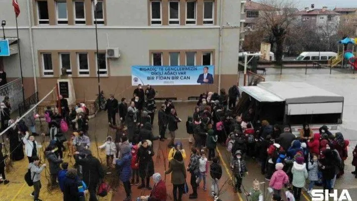 Balıkesir'in Bigadiç ilçesinde Belediye Başkanı İsmail Avcu, 15 bin meyve fidanını öğrenci ve öğretmenlerle buluşturdu.