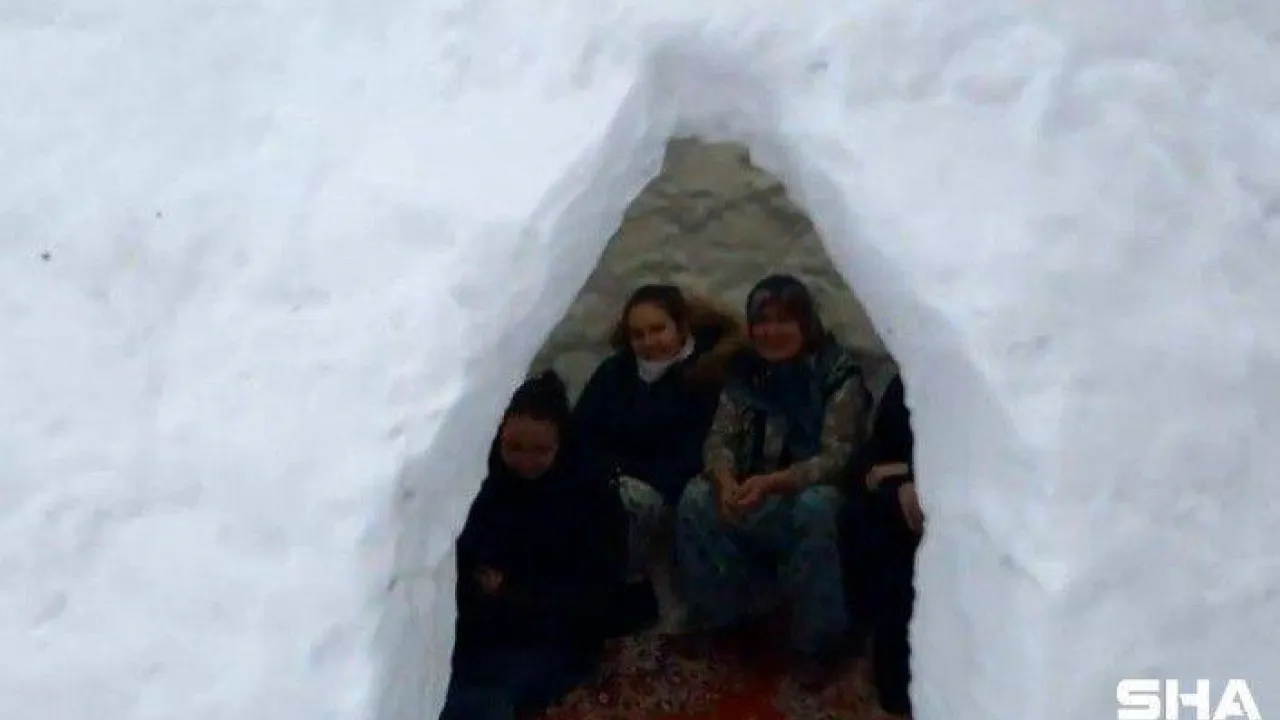Bursa’nın İznik ilçesinde oturduğu mahalleye eskimo evi yapan emekli öğretmenin kapısından misafiri eksik olmuyor. Torunlarıyla birlikte 4 günde tamamladığı eskimo evine ailece taşınan Mümin Ergül; kardan evde sıra gecesi bile yapıyor.