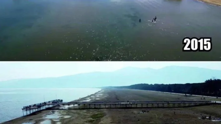 Son yıllarda çekilmesi ile gündemden düşmeyen İznik Gölü'nde su seviyesinin kritik seviyeyi geçmesi herkese korkutmaya başladı. Dron ile çekilen görüntüler ve 8-9 yıl önce çekilen fotoğraflardaki noktaların bugünkü halleri de gölün seviyesini daha net ortaya koydu.
