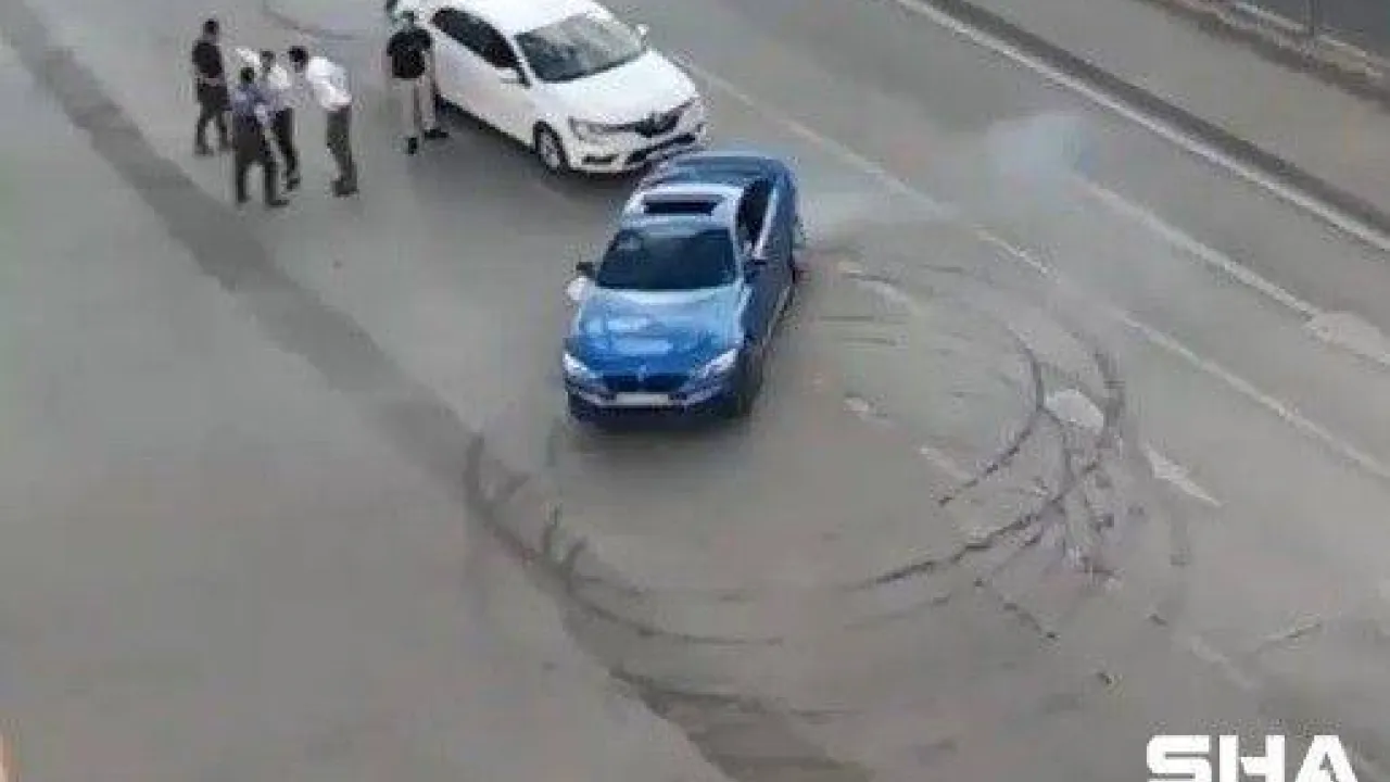 Güngören’de düğün konvoyunda trafiği kesen trafik magandaları yolda drift yaptı. O anlar cep telefonu kamerasına yansıdı.