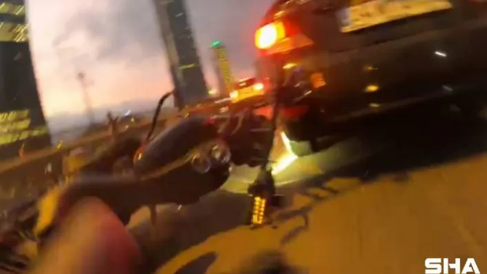 Beşiktaş Büyükdere Caddesi üzerinde seyir halinde olan motosiklet sürücüsü, önünde seyreden bir başka motosikletliye çarptı. Kask kamerasına yansıyan feci kazada metrelerce sürüklenerek yaralanan sürücü hastaneye kaldırıldı.