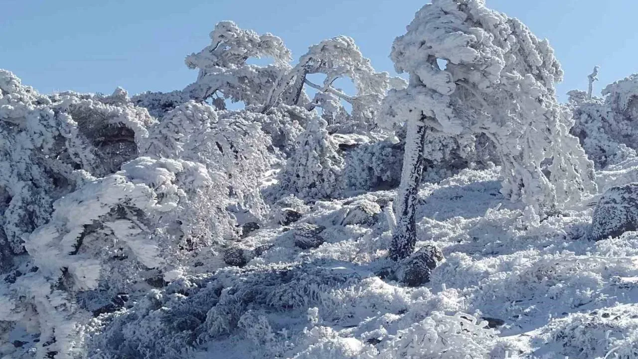 Kazdağları’nda kar yağışı ve şiddetli poyraz nedeniyle ağaçlar ağaçlar adeta buz tuttu. Bölgede sıcaklık değerleri eksi 10 derecenin de altına indi. Keşif yolcuları kuvvetli poyraz rağmen at kayası mevkiine, zaman zaman 30-40 cm bulan kara rağmen tırmanış gerçekleştirdi. Tırmanışa Yıldırım Alp, Ömer Aydemir, Mustafa Şıvka ve Rıfat Aydemir katıldı. Kayalık, buzlu ve kaygan bir rota üzerinde yapılan zirve tırmanışı yaklaşık 8 saat sürdü. Zorlu bir tırmanış ardından zirveye ulaşan dağcıların kamerasına Sibirya’yı hatırlatan görüntüler yansıdı.